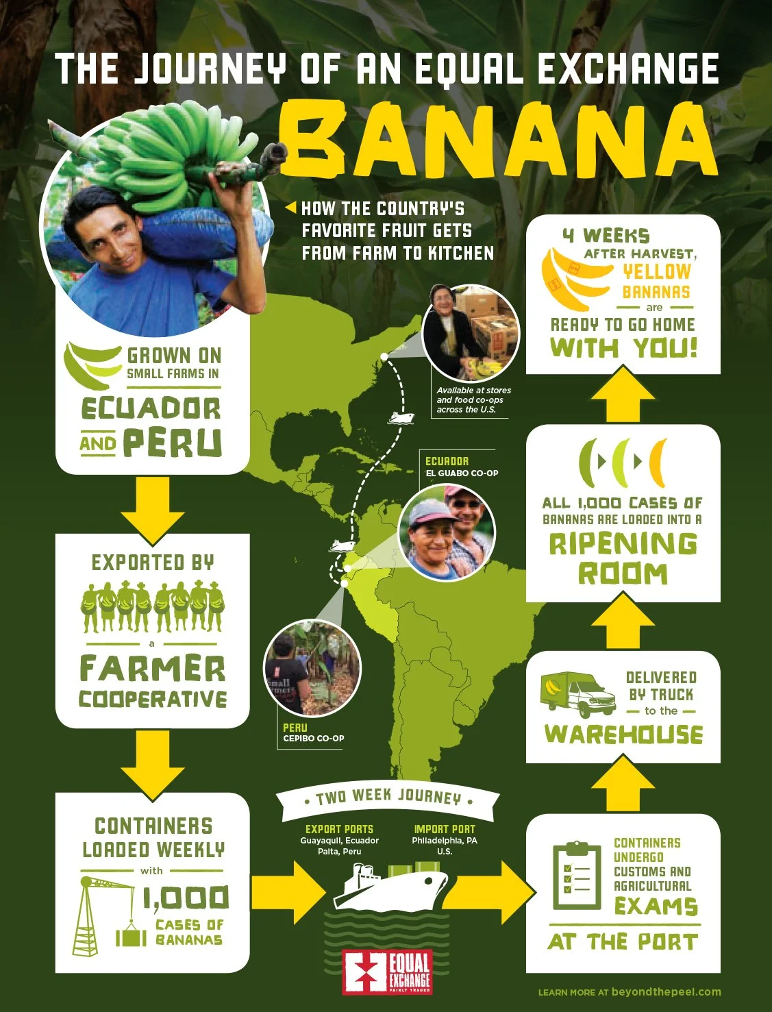 We offer Fair Trade Bananas year-round, bringing you superior flavor, in-house conditioning to order, and daily photos so you can make the right choice. Not all bananas are grown equally, nor are all farmworkers treated with respect and fair compensation despite their hard work. There’s an important story behind our Fair Trade Bananas and the folks who grow them! Read on for more.