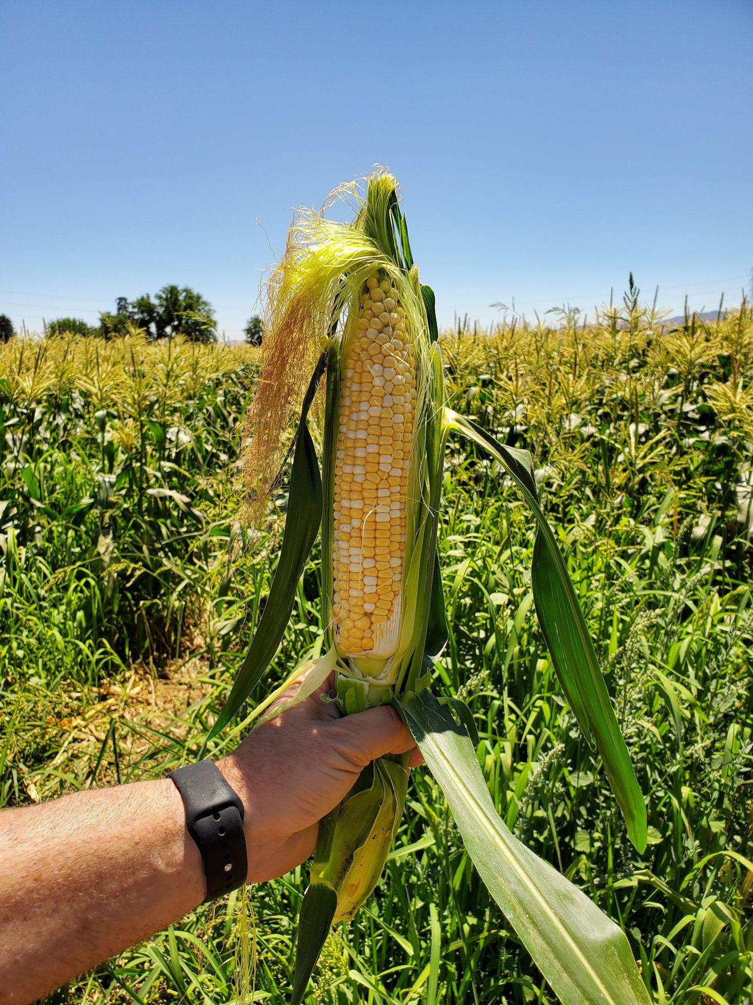The California organic corn season starts in May in Thermal, just 25 miles southeast of Palm Springs where the average high in May is 95.7°. In June, production begins to move north to Coalinga, just off Hwy 5, and continues up to Brentwood and Stockton in the Central San Joaquin Valley. Towards the end of the summer we may see some smaller growers north of Sacramento with inconsistent production.